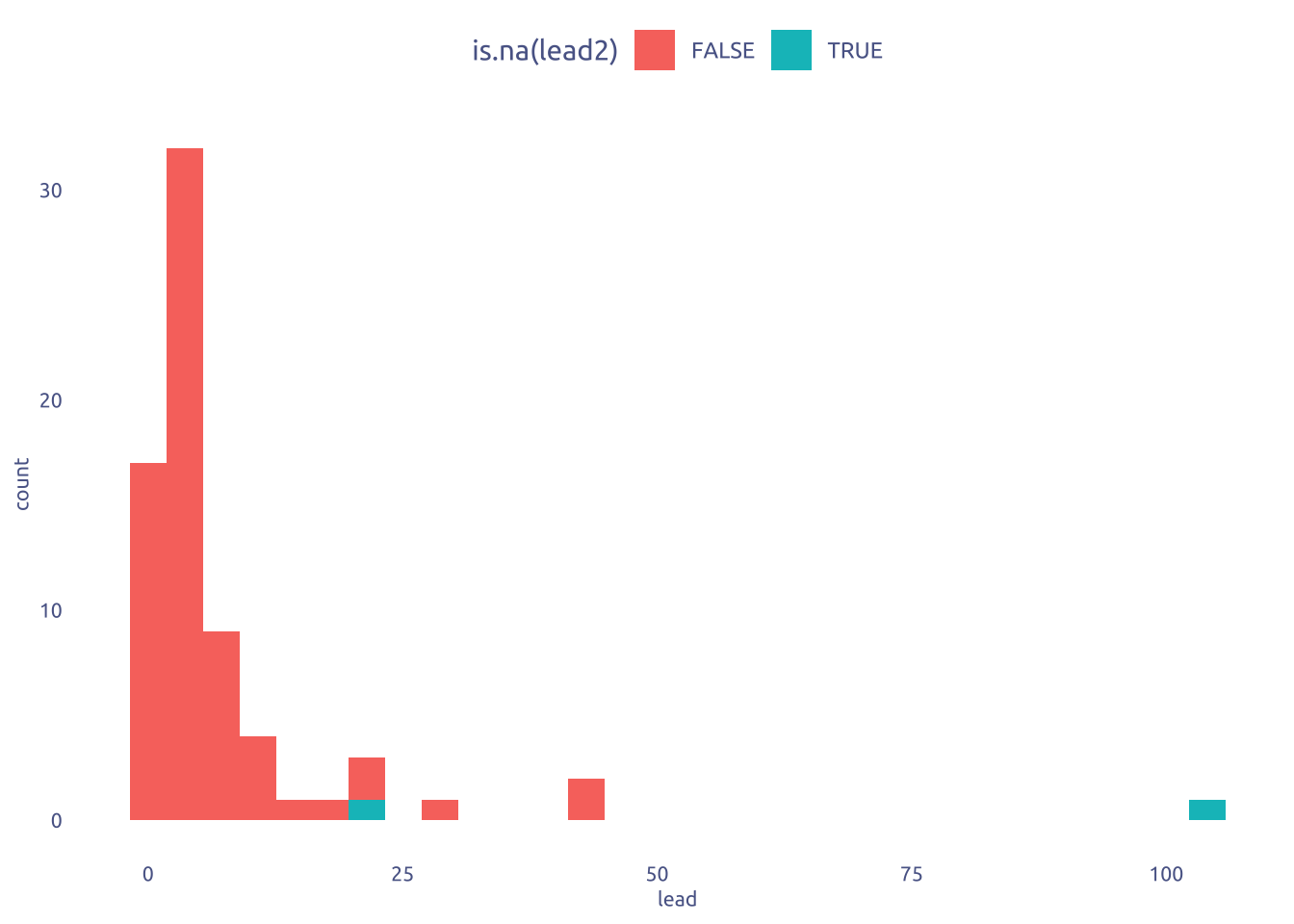 geom_histogram(aes(fill = is.na(lead2)))